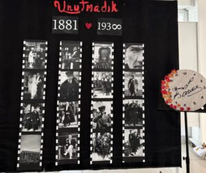 Öğretmenlik uygulaması dersi kapsamında hazırlanan pano öğretmen adaylarımızın donanımlı yetkinliklere sahip olması amaca ile planlanmıştır. Bu kapsamda dördüncü sınıf öğretmen adaylarının düzenlemiş olduğu panonun önünde Atamız sevgi, saygı ve özlemle anıldı… (SKA: 4, 17).