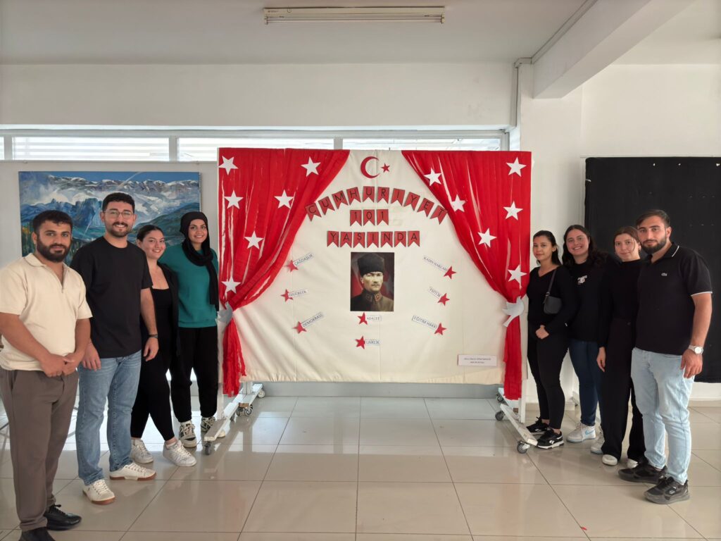 Yakın Doğu Üniversitesi Atatürk Eğitim Fakültesi, Temel Eğitim Bölümü Okul Öncesi Öğretmenliği Ana Bilim Dalı Öğretim Üyesi Yrd. Doç. Dr. Seçil BESİM AYHAN’ın koordinatörlüğünde dördüncü sınıf öğretmen adayları “29 EKİM CUMHURİYET BAYRAMI” konulu pano hazırladılar.