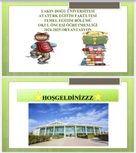 Yakın Doğu Üniversitesi Atatürk Eğitim Fakültesi Temel Eğitim Bölümü Okul Öncesi Öğretmenliği Ana Bilim Dalı tarafından 17 Ekim 2024 tarihinde oryantasyon etkinliği gerçekleştirildi (SKA: 4.1, 4.2, 4.3, 4.4, 4.5).