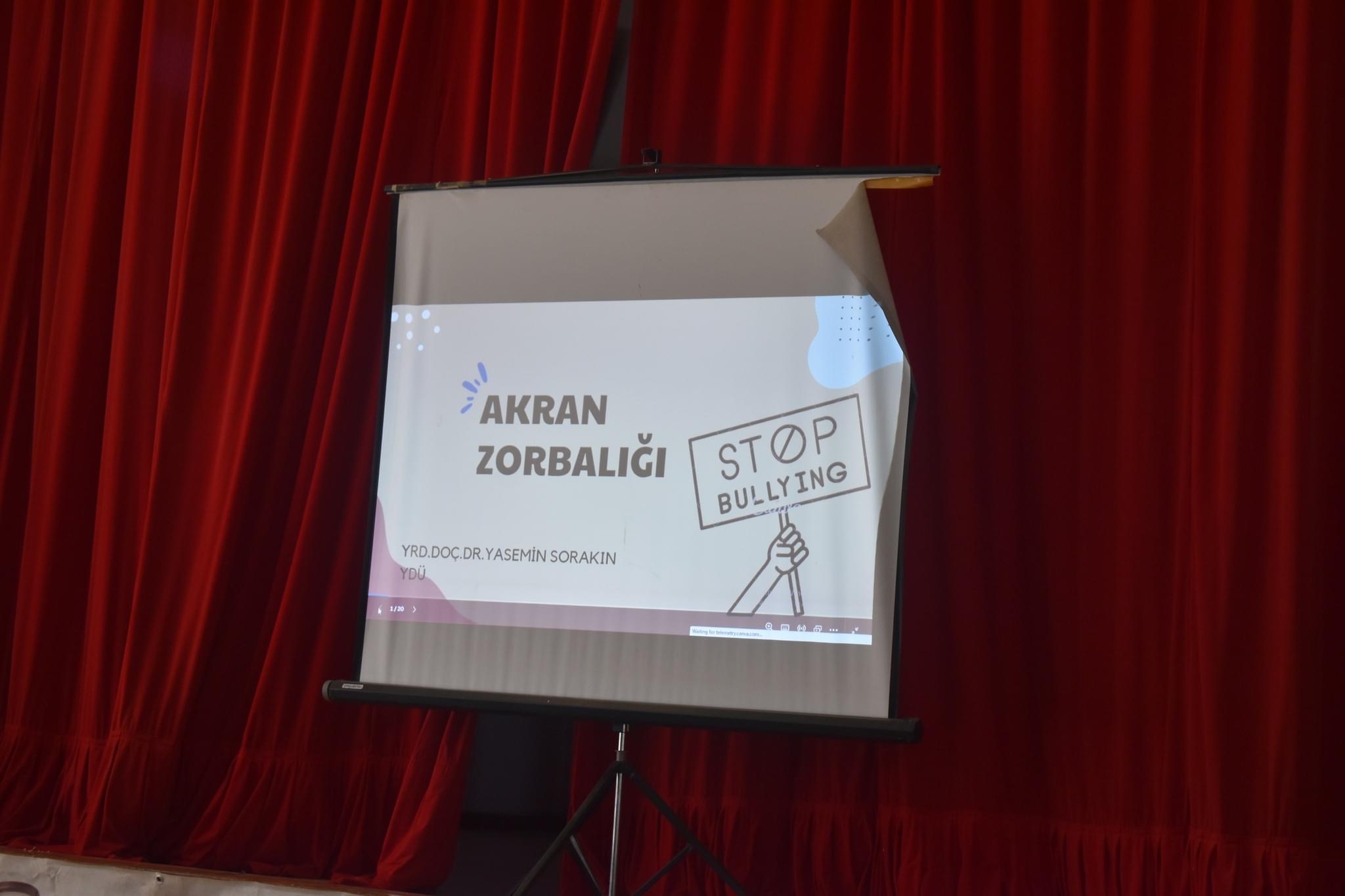 Atatürk Eğitim Fakültesi Rehberlik ve Psikolojik Danışmanlık Ana Bilim Dalı öğretim görevlisi Yrd. Doç. Dr Yasemin SorakınCengiz Topel Endüstri Meslek Lisesi öğrencilerine “Akran Zorbalığı” konulu seminer verdi (SKA: 4.3, SKA: 4.3.2, SKA: 17).
