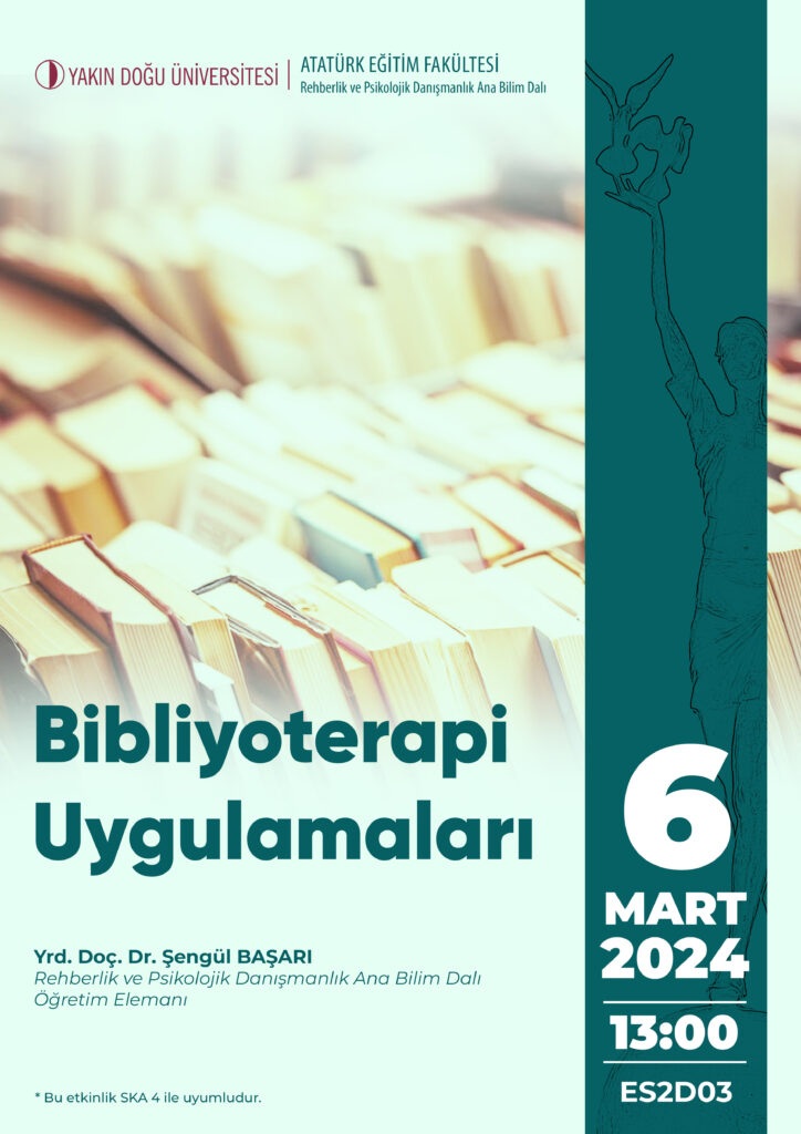 Atatürk Eğitim Fakültesi Rehberlik ve Psikolojik Danışmanlık Ana Bilim Dalı’nda 06 Martta Yrd.Doç.Dr. Şengül Başarı tarafından Bibliyoterapi Uygulamaları eğitimi verildi.