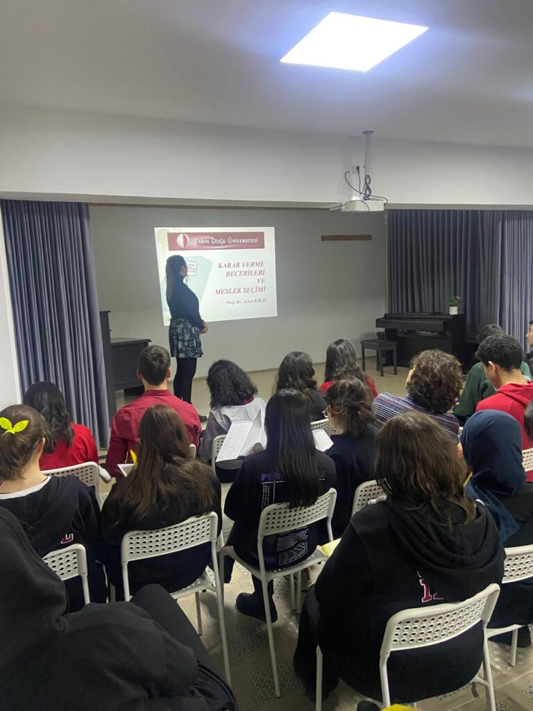 Yakın Doğu Üniversitesi Atatürk Eğitim Fakültesi Öğretim Üyesi Prof. Dr. Aşkın Kiraz, 24-27 Aralık 2024 tarihleri arasında İstanbul’daki çeşitli liselerde öğrencilere yönelik seminerler düzenledi. Seminerlerin ana temasını karar verme becerileri, meslek seçimi, sınav kaygısı ve motivasyon oluşturdu. Öğrencilere, gelecekteki eğitim hayatları ve kariyerleriyle ilgili daha bilinçli kararlar alabilmeleri için rehberlik yapmayı amaçlayan Prof. Dr. Kiraz, etkinliklerde öğrencilere kendilerini daha iyi tanımaları ve hedeflerine ulaşmaları konusunda çeşitli stratejiler sundu. Seminerlerde, özellikle sınav kaygısının nasıl yönetileceği ve meslek seçimi aşamasında doğru kararlar alabilmek için kişisel motivasyonun nasıl artırılacağı gibi konulara dikkat çekildi. Prof. Dr. Kiraz, öğrencilerin başarıları için kişisel dayanıklılık geliştirmelerinin önemini vurguladı.