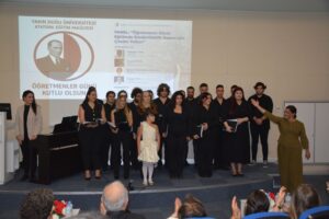 Yakın Doğu Üniversitesi Atatürk Eğitim Fakültesi tarafından düzenlenen “Öğretmenin Gücü: Eğitimde Sürdürülebilir Başarı için Çözüm Yolları” paneli, eğitimde kalıcı başarının nasıl mümkün olabileceğine dair çok yönlü bir tartışma zemini oluşturdu. Yakın Doğu Üniversitesi Atatürk Eğitim Fakültesi tarafından düzenlenen panel, anlamlı bir anla başladı. “En büyük öğretmen Atatürk’tü” vurgusunun damga vurduğu etkinlikte, öğretmenler gününe özel hazırlanan ve ilk kez seslendirilen “Atatürk Eğitim Fakültesi Öğretmen Marşı” büyük beğeni topladı. Söz ve müziği Doç. Dr. Seçil Besim Ayhan’a, düzenlemesi ve piyano eşliği Yrd. Doç. Dr. Hakkı Cengiz Eren’e ait olan marş; Doç. Dr. Emine Kıvanç Öztuğ yönetimindeki Müzik Öğretmenliği Anabilim Dalı Korosu tarafından, Dr. Gözdem İlkay’ın piyano eşliğiyle seslendirildi. Yakın Doğu Üniversitesi’nin öğretmenlik mesleğine verdiği değeri güçlü bir şekilde ortaya koyan bu özel performans, panelin duygusal atmosferini de pekiştirdi. Ardından “Öğretmenim” adlı eser seslendirilirken, küçük solist Özra Öztuğ’un sahneye eşlik ettiği anlar izleyicilerden büyük alkış aldı.