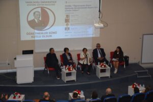 Yakın Doğu Üniversitesi’nde öğretmenler gününe özel bestelenen “Atatürk Eğitim Fakültesi Öğretmen Marşı” ilk kez “Öğretmenin Gücü: Eğitimde Sürdürülebilir Başarı için Çözüm Yolları” panelinde seslendirildi. Deneyimli isimlerin katkılarıyla gerçekleştirilen panelde okunan marş büyük beğeni topladı.