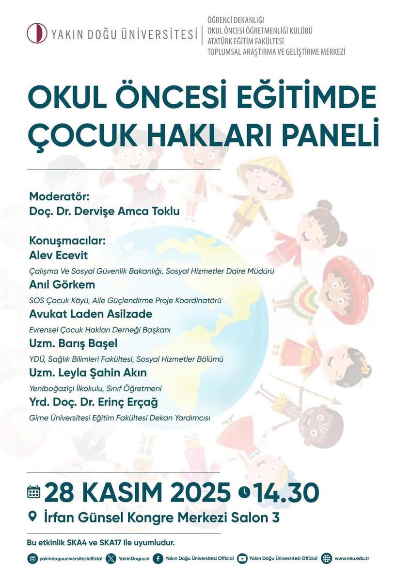 Yakın Doğu Üniversitesi Öğrenci Dekanlığı, Okul Öncesi Öğretmenliği Klubü ve Atatürk Eğitim Fakültesi Toplumsal Araştırma ve ve Geliştirme Merkezi tarafından düzenlenen “Okul Öncesi Eğitimde Çocuk Hakları” paneli, başarıyla tamamlandı.
