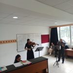 Keman öğrencileri Çağla Kurtoğlu, Ömer Doğan Atamer, Irmak Hancıoğlu ve Viyola öğrencisi Ayberk Okkıran öğretim üyeleri Uz.Gözdem İlkay ve Uz.İrada Melikova’nın piyano eşliğinde eserler seslendirdiler.